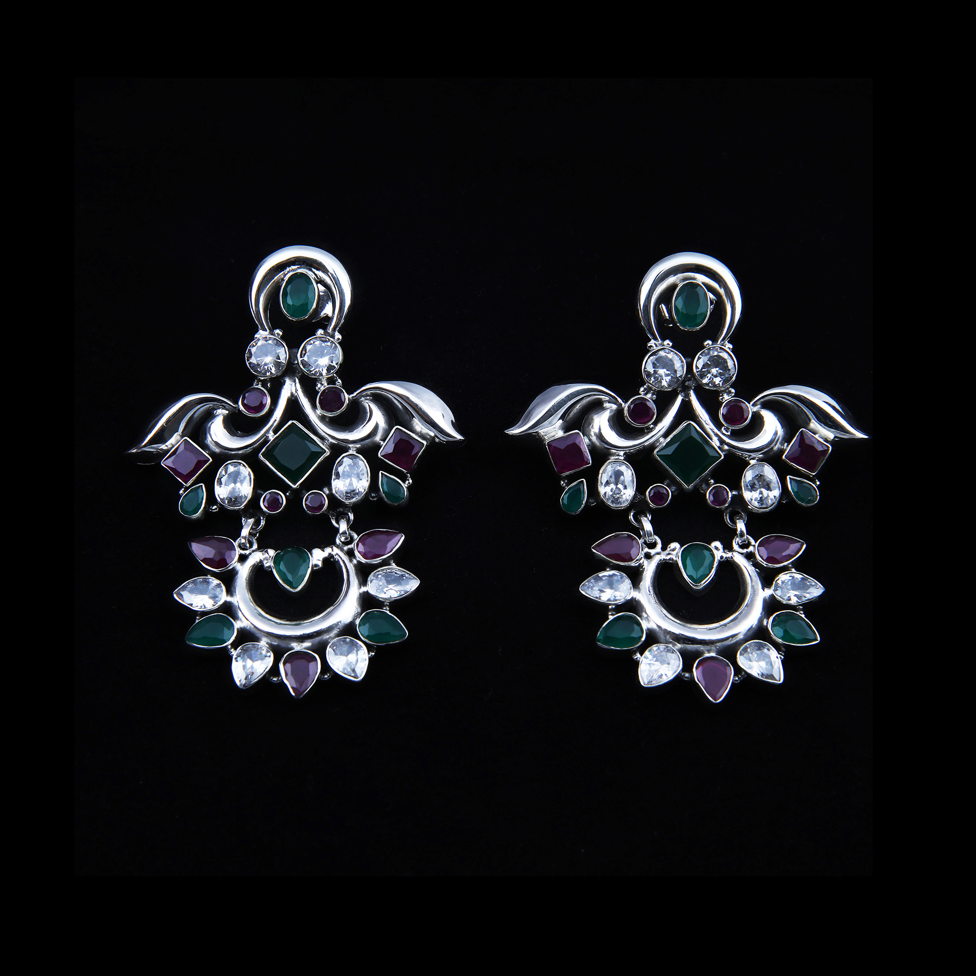 Multi Stone Stylish Silver Earring